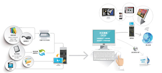 DESi數(shù)據(jù)加工與安全發(fā)布整體解決方案,基于成熟的方正Apabi網(wǎng)絡出版(eBook)解決方案之上,把擁有核心CEBX轉(zhuǎn)換技術(shù)和DRM技術(shù)軟件提供給客戶,保證了客戶自有特色資源的加工質(zhì)量和自有資源防擴散。使各企事業(yè)單位以較少的成本,快速建立的電子資料室。具有占地少、硬件和軟件投入小、數(shù)據(jù)量大、更新迅速、借閱方便,不受時間和地點限制等優(yōu)點。該解決方案涵蓋了電子資源格式轉(zhuǎn)換、標引、分類、目錄制作、多媒體鏈接,安全發(fā)布系統(tǒng)的全文檢索、分類瀏覽、下載瀏覽、收藏等全面功能,并為用戶提供高質(zhì)量的下載服務和方便、好用的閱讀工具。
